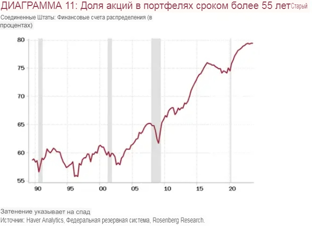Доля долей в портфелях людей старше 55 лет. Исследования Розенберга