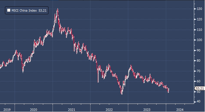 Morgan Stanley понизил рейтинг китайских акций до уровня «по рынку» в августе, заявив, что пришло время фиксировать прибыль на ралли, вызванном правительственными обещаниями по стимулированию в то время. С тех пор индекс Китая потерял около 18%. Позже в этом месяце он еще больше снизил прогноз, чтобы отразить растущие риски для экономического роста страны.