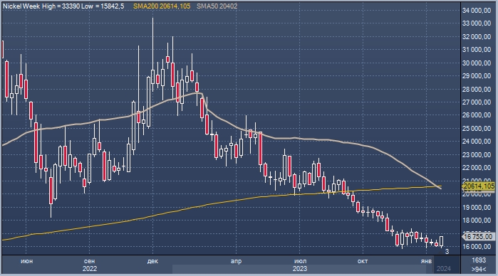 В 2023 г. никель на Лондонской бирже металлов подешевел на 47%. Это худший годовой результат с 2008 года.