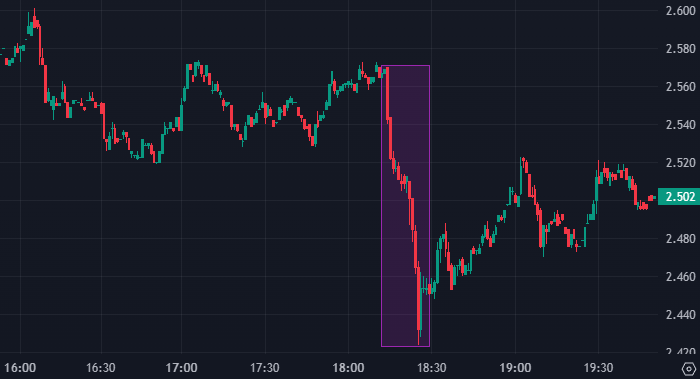 Цена природного газа в США (Henry Hub) интервалами 1 минута