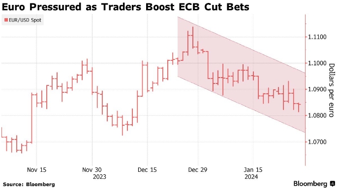Несмотря на то, что ее позиция по снижению ставок осталась неизменной, признание Лагард в четверг замедления экономического роста, снижения давления на заработную плату и продолжающейся дезинфляции - это все, что нужно трейдерам, чтобы почти полностью оценить предстоящее снижение на четверть пункта в апреле.