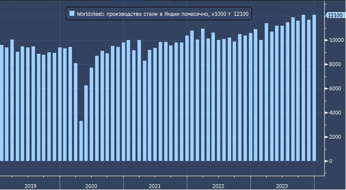 Индия в 2023 г. демонстрирует самые высокие в мире темпы роста производства стали
