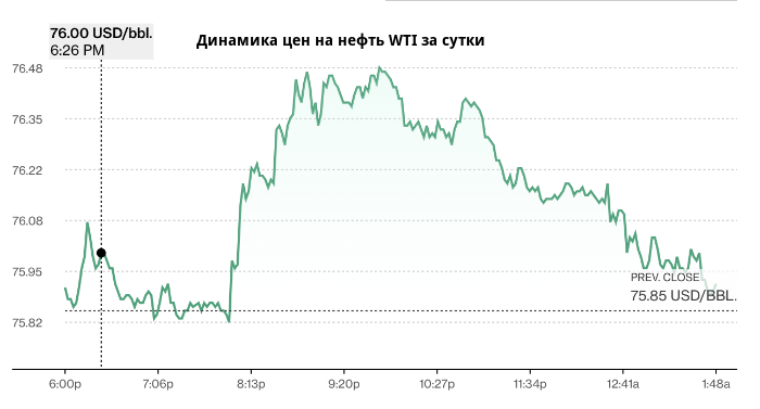 Нефть West Texas Intermediate торговалась вблизи отметки $76 за баррель, за сутки подешевев на 2,5%. Это самое серьезное падение с начала января. Цены на нефть марки Brent практически не изменились, оставшись ниже $81 за баррель. Данные о росте запасов сырой нефти в США и увеличении объемов добычи усилили понижательное давление на рынок в среду.