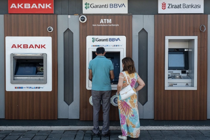 Клиенты у банкомата в Стамбуле. Фотограф: Керем Узель/Блумберг