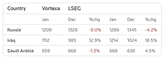 Согласно данным LSEG, в феврале Индия планирует получить по меньшей мере пять партий сырой нефти Sokol, по сравнению с полным отсутствием таковых в январе.