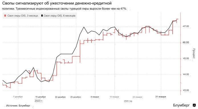 Эти движения отражают "ставки на ужесточение денежно-кредитной политики посредством либо повышения ставок, либо ужесточения условий ликвидности, либо и того, и другого", - сказал Альп Сербетли, глава казначейства ICBC Turkey Securities в Стамбуле. "Инфляция остается упорно высокой".