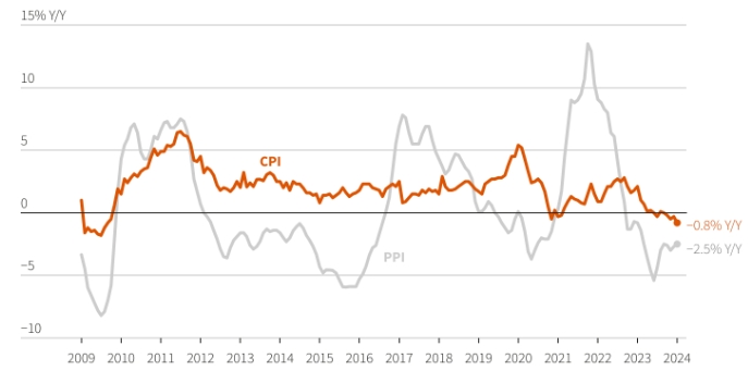 Потребительские цены в Китае в январе упали самыми стремительными темпами за более чем 14 лет, в то время как цены производителей также снизились. Это предполагает, что финансовым властям Поднебесной нужно сделать больше стимулов для оживления экономики, которая сталкивается с дефляционными рисками.