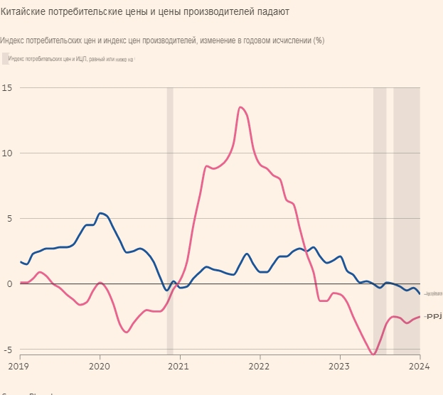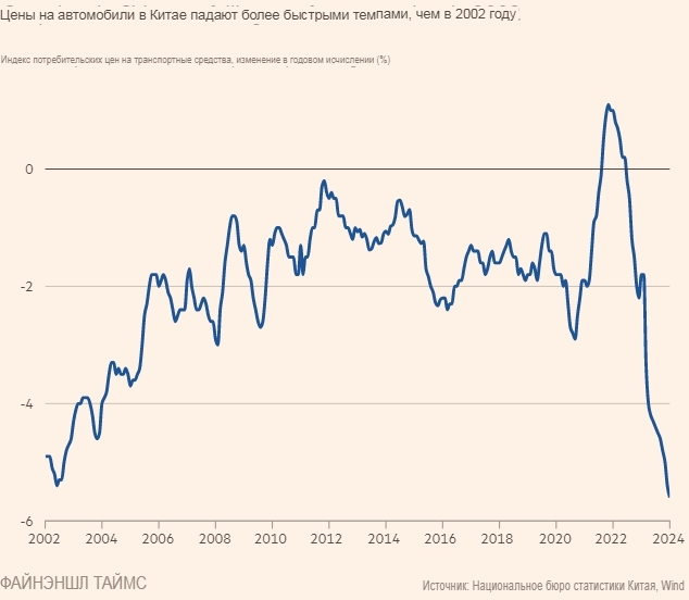 Потребительские цены во второй по величине экономике мира находились в состоянии дефляции в течение последних четырех месяцев, упав в январе самыми быстрыми годовыми темпами за 15 лет. В то время как основной показатель обусловлен продуктами питания, а цены в других секторах растут, предприятия, продающие все, от косметики до электротоваров, предлагают скидки. Цены на автомобили падают самыми быстрыми темпами за последние 22 года.