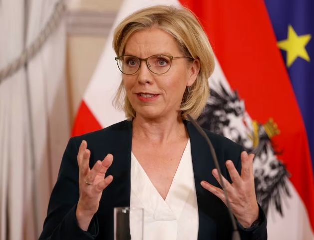 Министр по борьбе с изменением климата и энергетике Австрии Леонора Гевесслер выступает на пресс-конференции в Вене, Австрия, 17 октября 2023 года. REUTERS/Леонхард Фогер