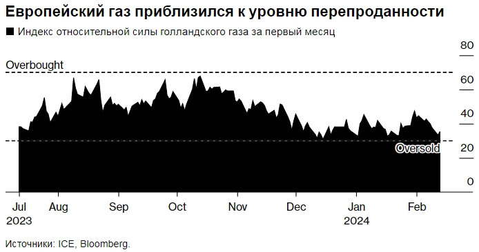 Европейский газ приблизился к уровню перепроданности. Источники: ICE, Bloomberg.