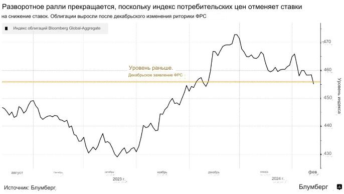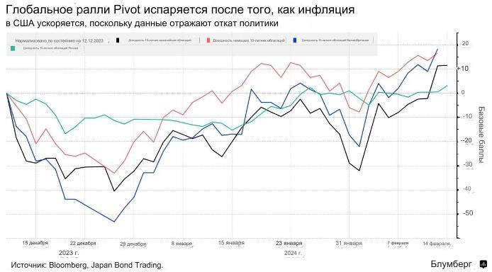 Мировые облигации упали в этом году, поскольку председатель Федеральной резервной системы Джером Пауэлл побудил основных коллег решительно противостоять рыночным ставкам на то, что центральные банки начнут быстрое смягчение политики уже в марте. Падение ускорилось после того, как данные во вторник показали, что инфляция в США в январе была сильнее, чем ожидалось, что побудило трейдеров перенести ожидаемые сроки первого снижения процентной ставки ФРС на июль.