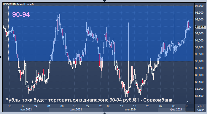 Российская валюта, скорее всего, будет торговаться в диапазонах 90-94 руб./$1, 97-101 руб./EUR1 и 12,4-13 рублей за юань в ближайшие недели, считает главный аналитик Совкомбанка Михаил Васильев.