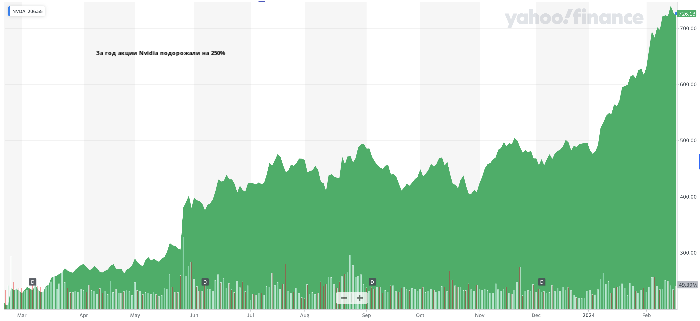 Динамика цен на акции Nvidia. Источник: Yahoo Finance