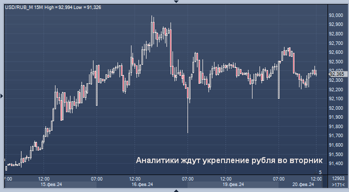 По мнению экспертов "Интерфакс-ЦЭА", на рубль давит негатив на мировых рынках капитала с учетом сниженной активности инвесторов - американские биржи в понедельник закрыты в связи с празднованием Дня президентов. Кроме того, отрицательно на динамику нацвалюты влияет санкционная тематика - в Брюсселе проходит заседание Совета ЕС по иностранным делам, на котором может быть утвержден 13-й пакет антироссийских санкций. Вместе с тем поддержку рублю оказывает продажа компаниями-экспортерами выручки в рамках подготовки к налоговым выплатам месяца, которые им предстоит произвести 28 февраля.