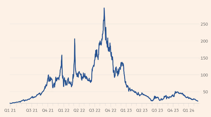 Пик цен на европейский газ пришелся на лето 2022 года, когда поток газа из России практически полностью иссяк. Тогда за мегаватт-час приходилось платить по 300 евро. С тех пор странам ЕС удалось координированными действиями сократить спрос и нарастить импорт СПГ из США. Эти меры, а также несколько теплых зим помогли снизить дефицит поставок газа в Европу.