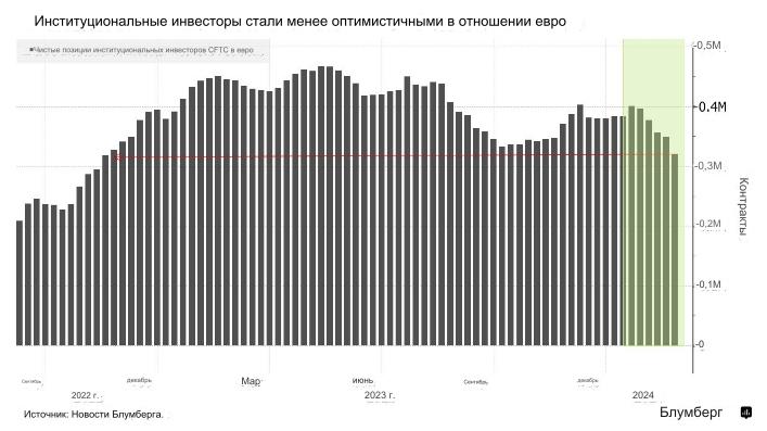 Хотя в последние недели курс евро вырос до отметки $1,0850, в этом году он по-прежнему снижается на 1,7% по сравнению с укрепляющимся долларом. Потоки, отслеживаемые State Street Corp., показывают "интенсивные продажи" евро институциональными инвесторами в течение последней недели или около того. По словам банка, эти инвесторы продавали евро против большинства валют Группы 10, за исключением самых низкодоходных.