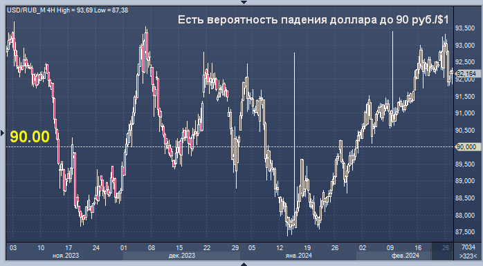"Курс доллара опустился ниже 92,5 руб./$1. Технически это значимо - переход планки под контроль участников на укрепление нацвалюты повышает вероятность развития хода поближе к 90 руб./$1. Фундаментально за рубль стоят факторы жесткой денежно-кредитной политики ЦБ РФ, сдавливающие спрос на валюту под импорт, и нормативы репатриации выручки экспортеров, увеличивающие общее предложение валюты на рынке. В ближайшие месяцы вариант девальвации по-прежнему не рассматривается, а скачки валютных пар относим к скоротечной биржевой волатильности", - пишет аналитик БКС Экспресс Михаил Зельцер.