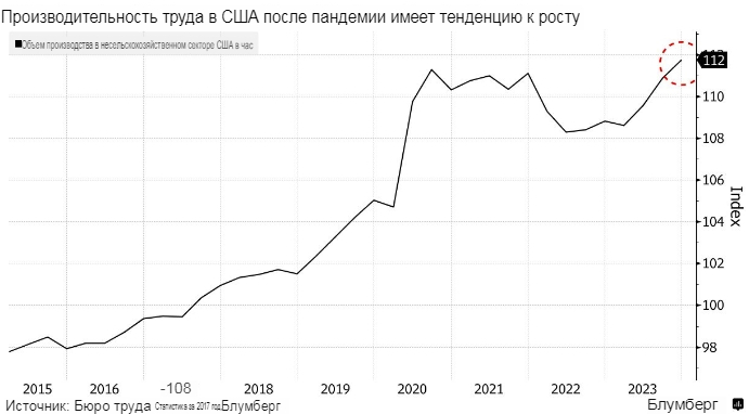 США пожинают плоды - по крайней мере, в настоящее время - всплеска производительности труда, который может защитить экономику от глобального замедления. Но краткосрочные эффекты являются лишь побочными продуктами более мощной основной тенденции, считает Фиотакис из Barclays.