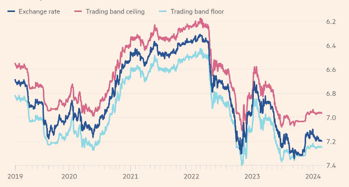 Юань движется в строго обозначенном коридоре. Источник: The Financial Times