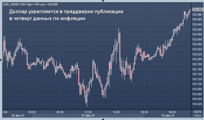 Индекс доллара США, который измеряет курс валюты против корзины аналогов, в последний раз рос на 0,14% до 103,98.
