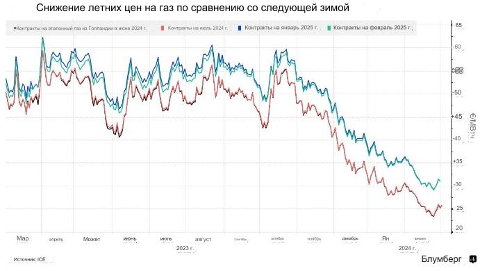 "Европейские хранилища могут свободные мощности для закачки газа до начала отопительного сезона", - написали аналитики Energy Aspects Ltd. в своей записке на этой неделе. В связи с этим европейские трейдеры вынуждены использовать плавучие и украинские хранилища. «Более низкие цены поставки газа в летние месяцы по сравнению с зимними контрактами поддержат экономическую целесообразность использования обоих вариантов».