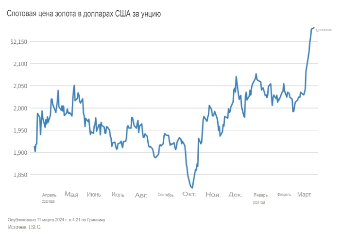 В пятницу золото достигло рекордной отметки в $2 194,99, поднимаясь четвертую сессию подряд, так как данные указывали на охлаждение рынка труда в США.