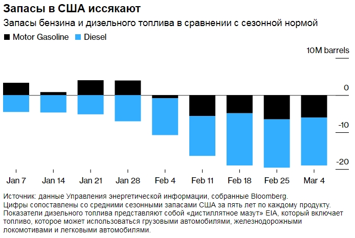 Крекинг дистиллятов - стоимость дизельного топлива и авиакеросина по сравнению с ценами на сырую нефть - выиграет от очень низких запасов и снижения производства в краткосрочной перспективе, поскольку нефтеперерабатывающие заводы сосредоточатся на выпуске бензина, отметила Goldman Sachs Group Inc. в отчете на этой неделе.