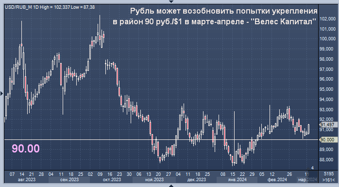 Представитель "Велес Капитал" Юрий Кравченко пишет, что в конце февраля и начале марта рубль отыграл примерно половину позиций, утерянных с конца января. В самом начале марта несмотря на завершение февральского налогового периода рубль нашел в себе силы. Это в очередной раз косвенно подтвердило эффективность механизма обязательной продажи валютной выручки экспортерами, даже в условиях сокращения общего объема продаж валюты.