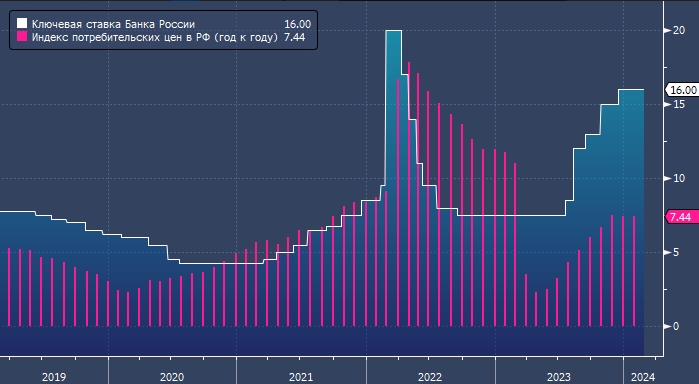 "Учитывая последние прогнозные данные ЦБ РФ по среднему значению ключевой ставки в течение 2024 года в диапазоне 13,5-15,5%, можно предположить о намерении регулятора сохранять ее текущее значение как минимум до конца первого квартала", - пишет эксперт "Ренессанс Банка".