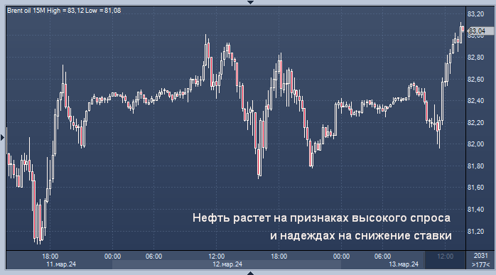 Фьючерсы на нефть Brent на май выросли на $1,18 цента, или на 1,44%, до $83,10 за баррель к 13:38 мск. Американская нефть West Texas Intermediate с поставкой в апреле подорожала на $1,15 центов, или на 1,48 %, до $78,70.