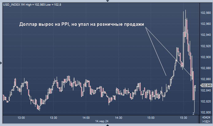 Индекс цен производителей в США в феврале вырос на 0,6% в месяц, превысив все оценки. Розничные продажи в США в феврале выросли на 0,6%, что ниже прогноза.