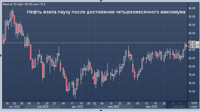 Цена на нефть Brent с поставкой в мае снизилась на 0,2% и составила 85,23 доллара за баррель по состоянию на 15:25 в Сингапуре. Цена на нефть WTI с поставкой в апреле снизилась на 0,2% до $81,10 за баррель.