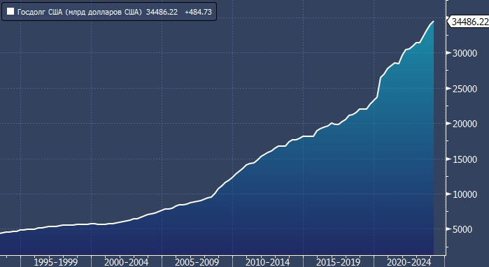 По оценкам Goldman Sachs, стоимость долга США может достичь нового рекорда к 2025 году, а общий объем процентных выплат по долгу потенциально может составить $10,6 трлн в течение следующего десятилетия, согласно отдельному анализу Фонда Питера Г. Петерсона (Peter G. Peterson Foundation).