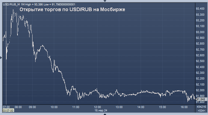 Таким образом, по официальному курсу ЦБ доллар вырос к рублю на 11 копеек, евро вырос к рублю на 27 копеек, а китайский юань вырос к рублю на 2 копейки по сравнению с официальным курсом выходных. Объем торгов на Московской бирже к 16:28 мск понедельника составил 1 294,7463 млрд рублей или 14 093,2437 млн долларов.