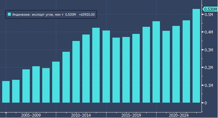 Индонезия — крупнейший в мире экспортер угля. По данным МЭА, страна в 2023 г. экспортировала около 508 млн т, что на 8% выше, чем в 2022 году.