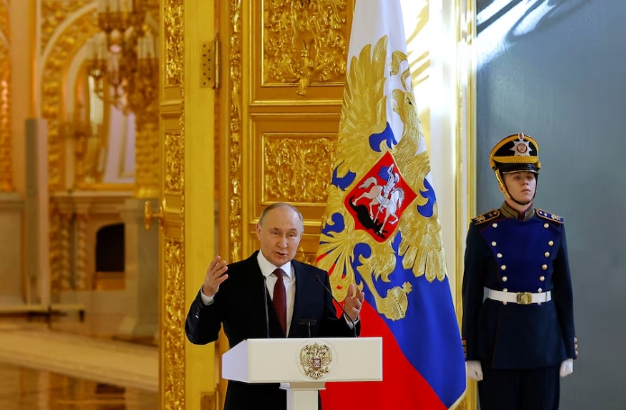 Президент России Владимир Путин выступает во время встречи с доверенными лицами своей избирательной кампании в Кремле в Москве, Россия, 20 марта 2024 года. REUTERS/Евгения Новоженина