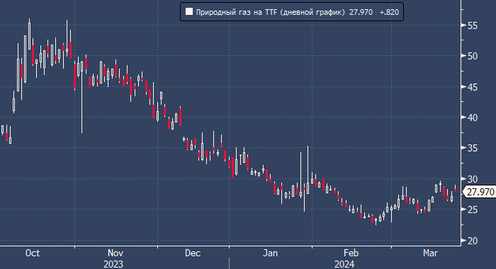 Цена природного газа на TTF в евро за МВт·ч интервалами 1 день