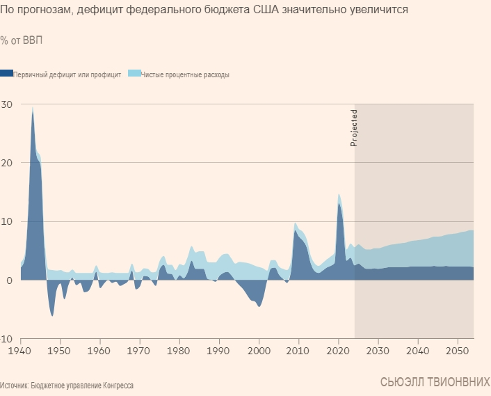 Филип Свагель, директор Бюджетного управления Конгресса (CBO), заявил, что растущее финансовое бремя США движется по «беспрецедентной» траектории, создавая риск кризиса, подобного тому, который спровоцировал бегство из фунта и крах правительства Трасс в Великобритании в 2022 году.