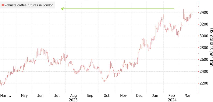 Сокращение производства способствовало росту фьючерсов на робусту в Лондоне более чем на 50% за прошлый год до максимума по меньшей мере с 2008 года. Цены во Вьетнаме более чем удвоились по сравнению с годом ранее до рекордного уровня, отметил Хай, который ожидает сохранения устойчивости рынка до мая, когда начнутся сборы урожая в Бразилии и Индонезии.