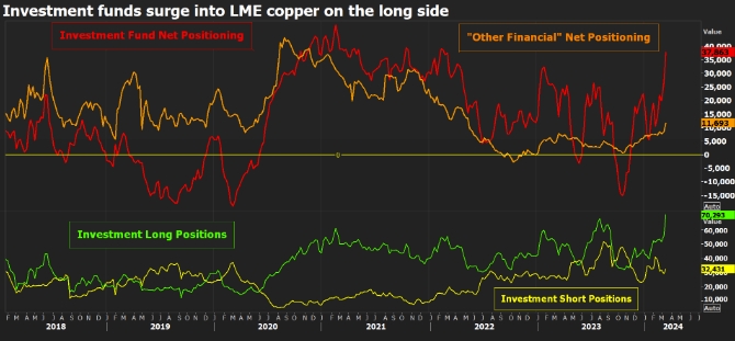 Большая часть инвестиционного сообщества в прошлом году держалась в стороне от меди, но теперь фонды явно возвращаются в длинные позиции после того, как 18 марта цены на металл на LME подскочили до 11-месячного максимума в $9 165 за метрическую тонну.
