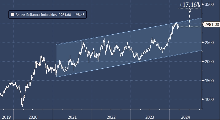 Аналитики Goldman повысили целевую цену роста акций компании Reliance Industries с 2925 до 3400 рупий и сохранили рейтинг «покупать».