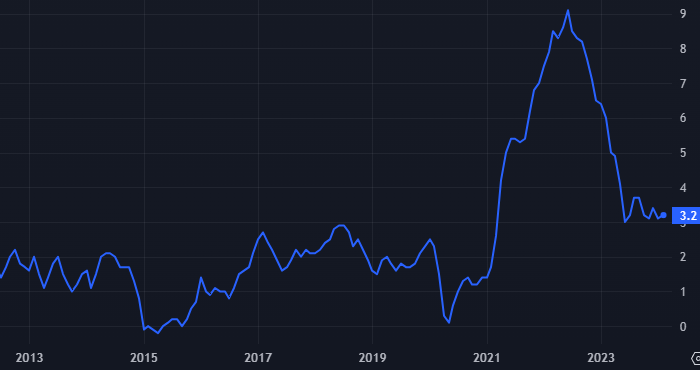 Индекс потребительских цен в США в % г/г