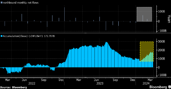 В этом месяце нерезиденты купили бумаг примерно на чистые CNY22 млрд (около $3 млрд) через трансграничные инвестиционные каналы, соединяющие Гонконг с биржами материкового Китая. Таким образом, нерезиденты покупают акции китайских компаний второй месяц подряд после беспрецедентных шести месяцев чистых продаж.
