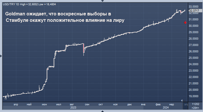 Хотя Турция подвержена колебаниям политики, аналитики Goldman не считают, что результаты выборов приведут к изменению текущей денежно-кредитной и фискальной политики. Они ожидают, что давление на резервы и лиру ослабнет после голосования, и считают, что центральный банк сохранит жесткую политику.