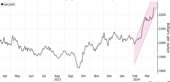 Позитивные перспективы золота подтверждались рядом ведущих банков. В частности, JPMorgan Chase & Co. заявил в прошлом месяце, что предпочитает этот металл среди всех сырьевых активов, а его цена может достичь $2500 за унцию в этом году. Goldman Sachs Group Inc. прогнозирует потенциал роста до $2300, отмечая преимущества более низких процентных ставок.
