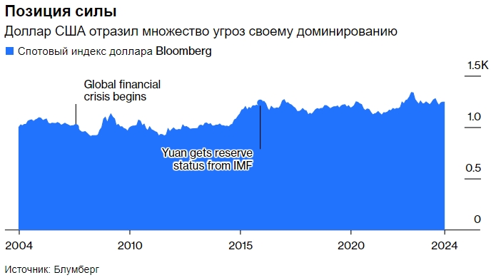 Сильная позиция. Доллар США отразил множество угроз своему господству. Источник: Bloomberg