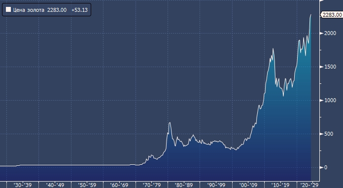 По состоянию на 06:02 GMT спотовое золото выросло на 0,2% до 2 283,76 долларов за унцию и достигло рекордного уровня в 2 288,09 долларов ранее в ходе сессии. С четверга золото последовательно достигает рекордных отметок.