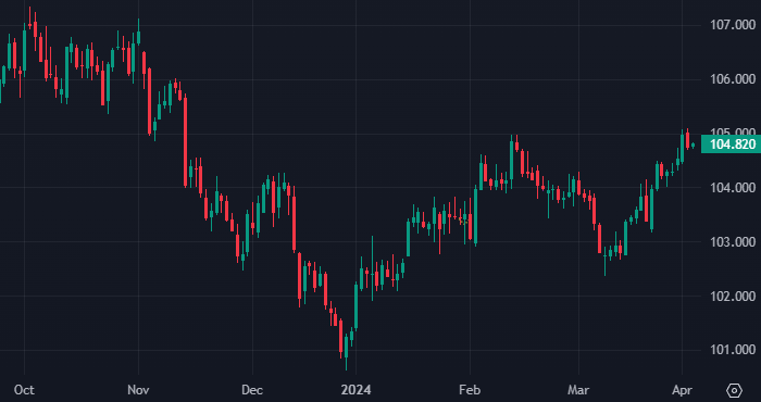 Индекс доллара DXY интервалами 1 день