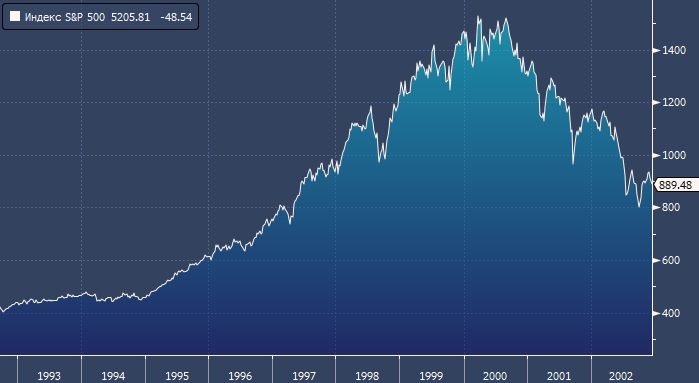 Стив Эйсман: я всегда думаю про 1999 и 2000 годы, когда рынок определенно находился в пузыре. На графике представлен индекс S&P 500.