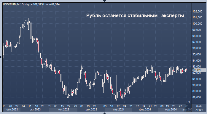 «Отмечу, что начинающийся второй квартал сезонно благоприятен для сырьевых активов. Наряду с обязательной реализацией валютной выручки экспортерами и сезонным ослаблением спроса на импорт это выступает поддерживающим фактором для рубля и позволяет рассчитывать, что курс доллара в апреле перейдет к проторговке диапазона 91-95 руб./$1, тяготея к концу месяца к его нижней части», — пишет он.